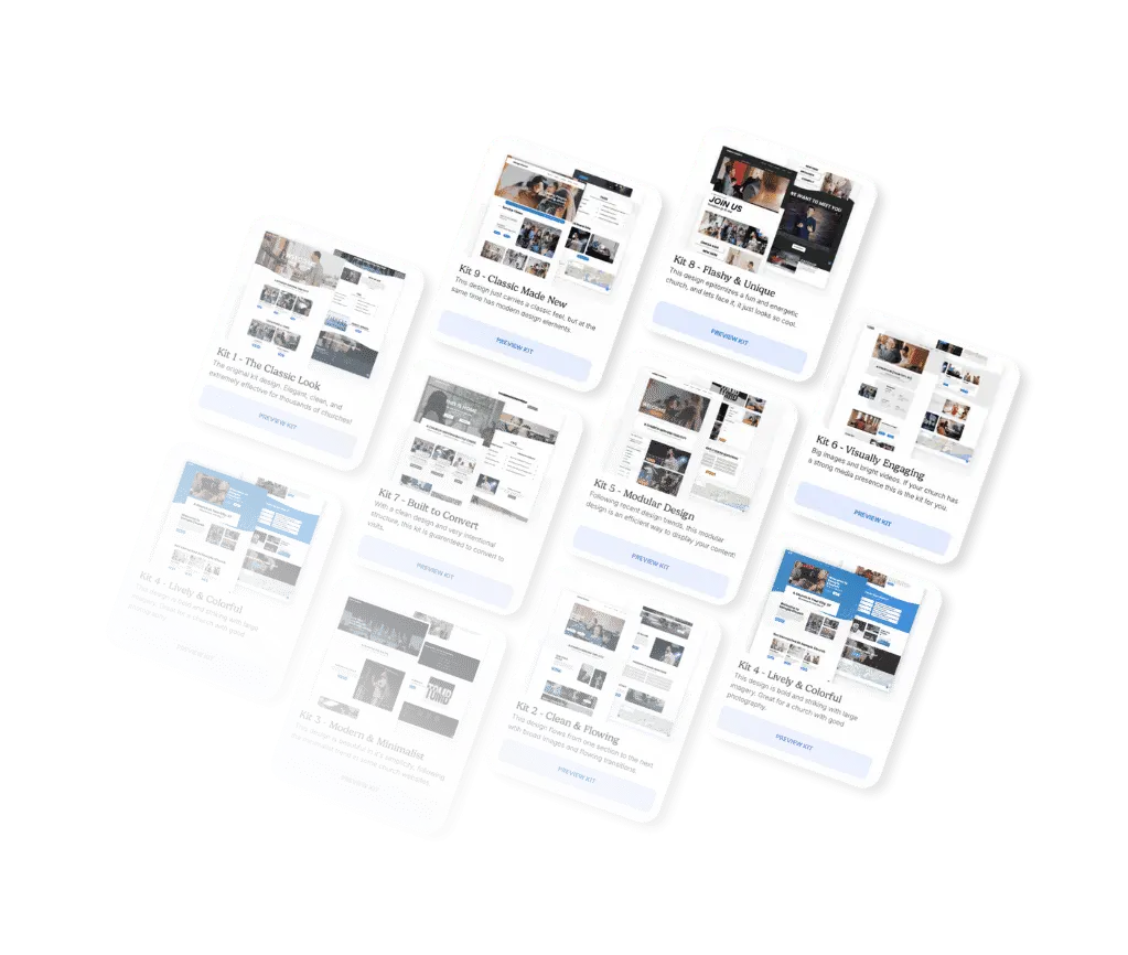 Ministry Designs has multiple different pre-optimized designs for you to choose from as a starting point! Simply pick what design kit fits your church best, provide some brand information, and you're good to go!